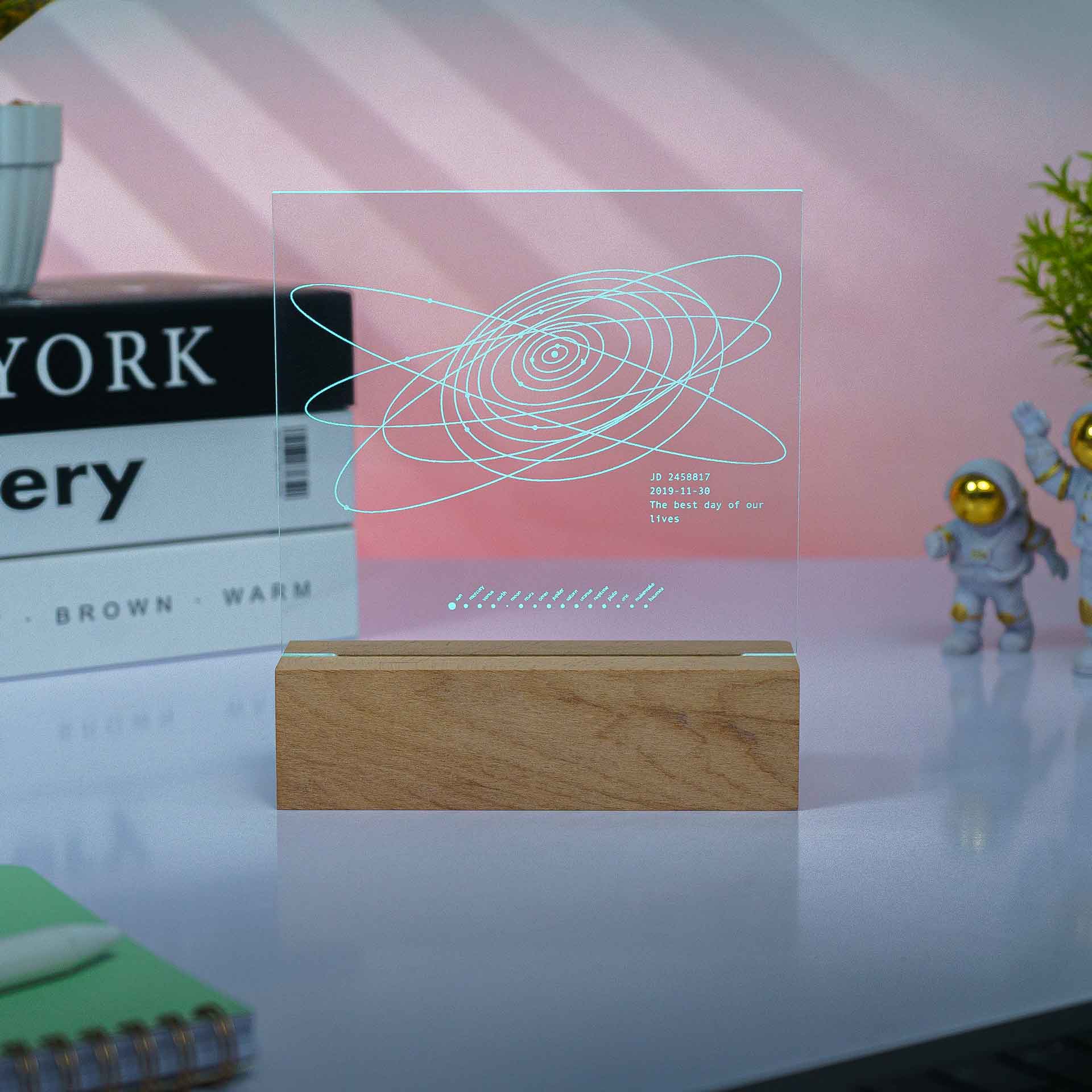 The Stars Coordinates is a custom Solar System alignment from the moment your heart skipped a beat. Was it your first kiss, the birth of a child, or that instant you knew your world had changed?