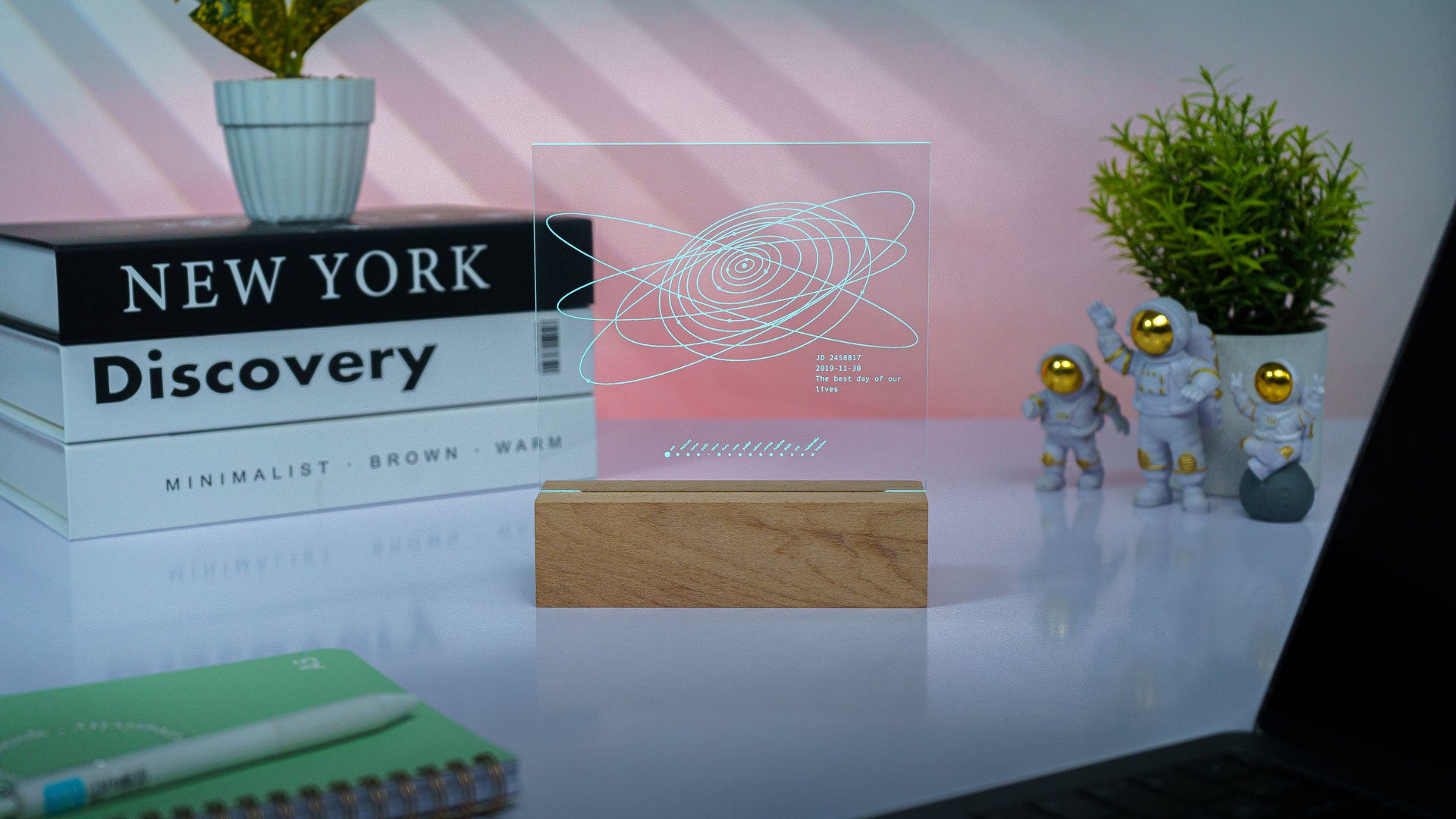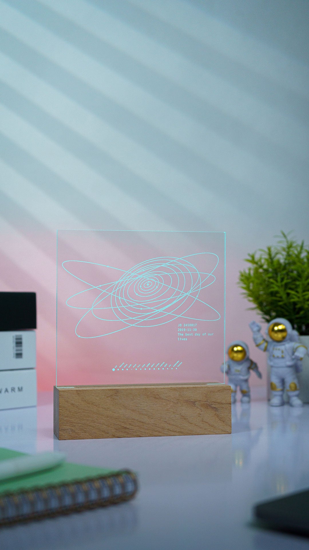 The Stars Coordinates is a custom Solar System alignment from the moment your heart skipped a beat. Was it your first kiss, the birth of a child, or that instant you knew your world had changed?