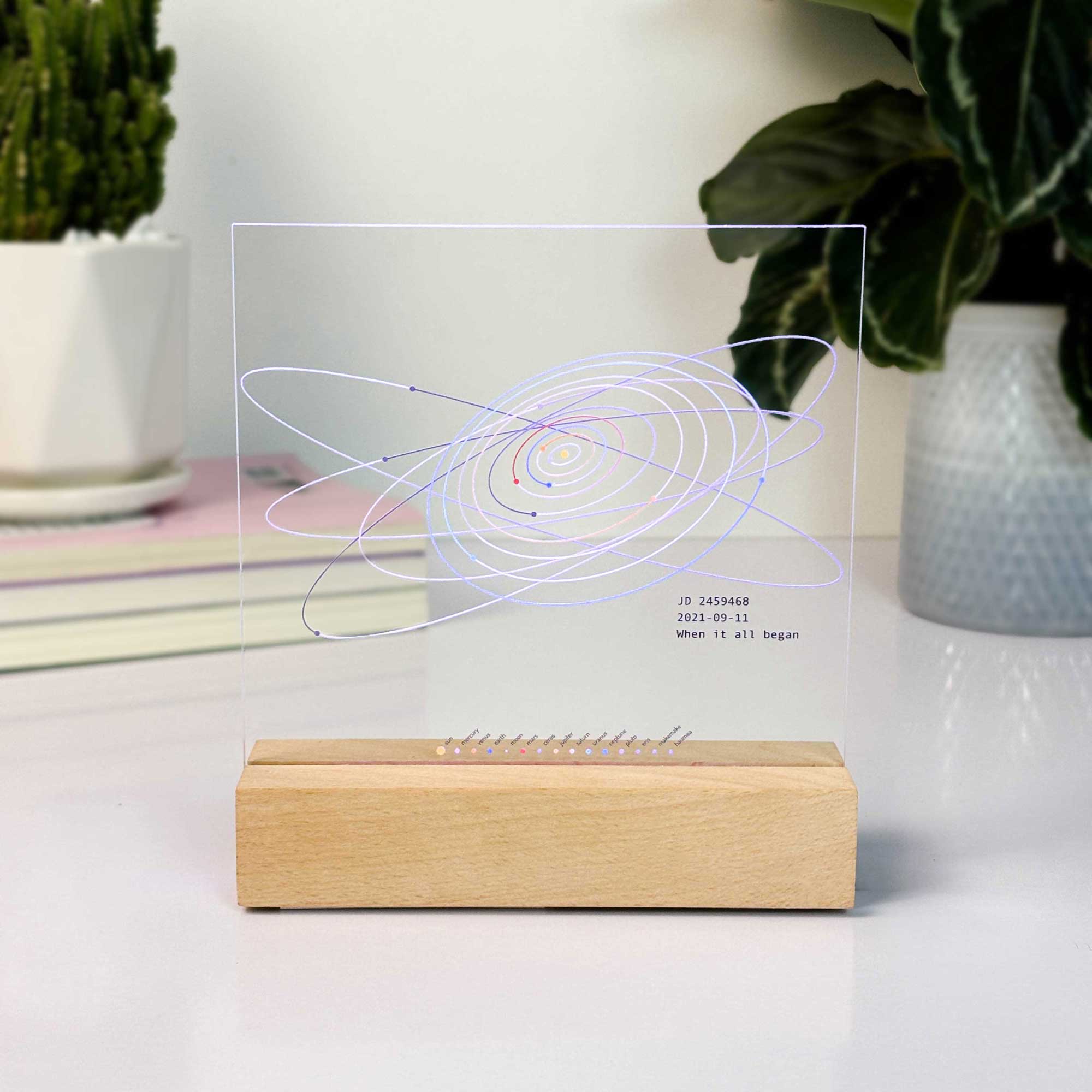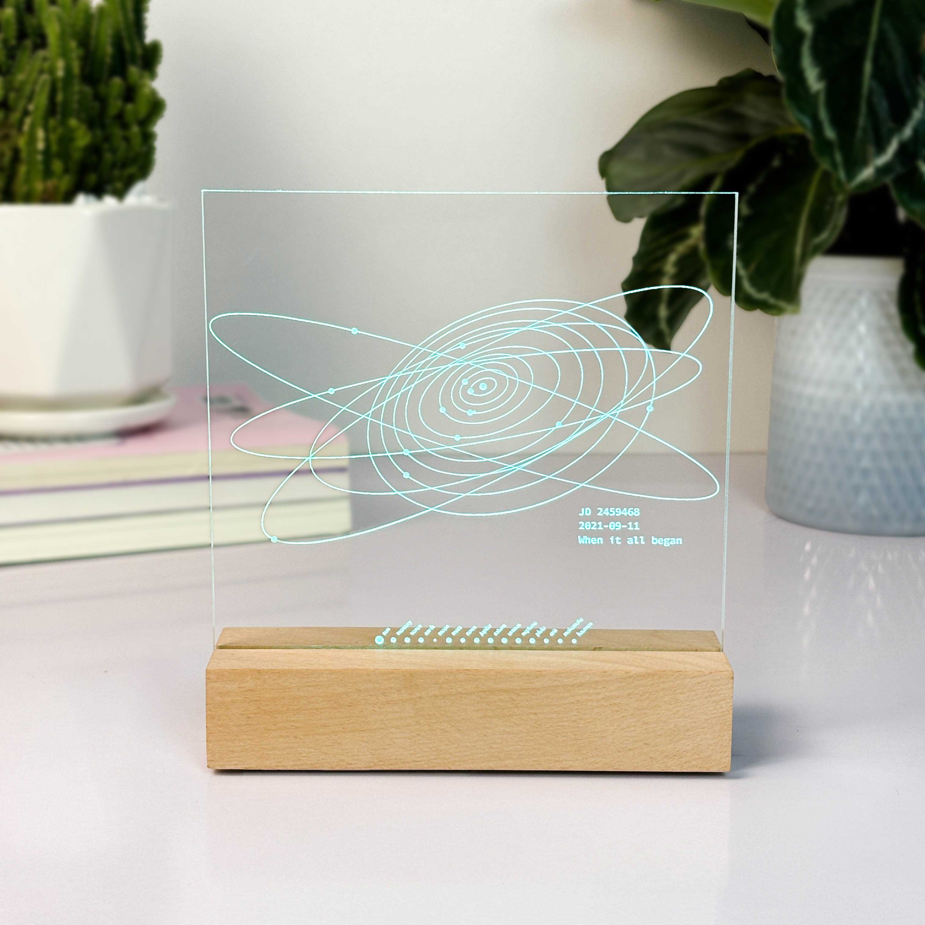 Create a custom Stars Coordinates Solar System for life’s most meaningful moments, precision-etched on crystal-clear acrylic and set on an elegant LED base. Your chosen date becomes a radiant display—day or night.